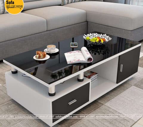 Với thiết kế mặt kính đen sang trọng kết hợp thân bàn màu trắng – đen tương phản, mẫu bàn trà sofa đẹp HCM 0170 mang lại cảm giác hiện đại, sạch sẽ và đẳng cấp cho không gian phòng khách.