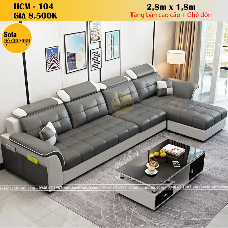 sofa góc HCM104, sofa HCM104, sofa góc da HCM104, sofa góc chữ L, sofa da Hàn Quốc, sofa phòng khách hiện đại, sofa giá rẻ HCM, sofa Hồ Chí Minh, sofa Dĩ An Bình Dương, sofa quận 7, sofa quận 9, sofa quận Tân Bình, mua sofa góc đẹp, sofa tặng bàn ghế, sofa cao cấp TP.HCM
